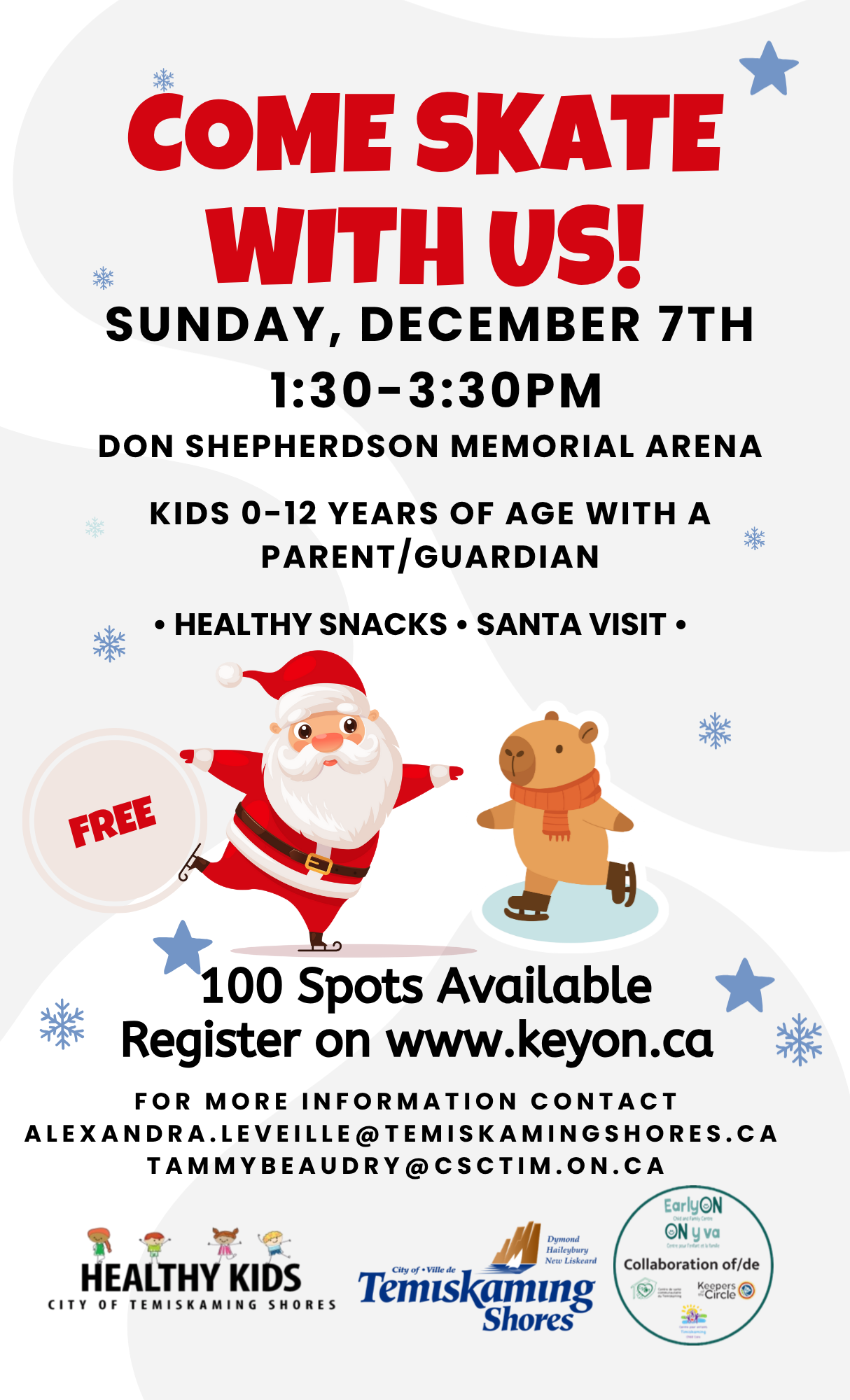 The Healthy Kids Community Challenge was a community-led initiative that was funded by the Ministry of Health and Long-Term Care from 2015 to 2018. The City of Temiskaming Shores was 1 of 45 communities to receive the funding. The focus was to promote healthy behaviours in children 0 to 12 years and included 4 themes promoting physical activity, healthy eating and screen-time.